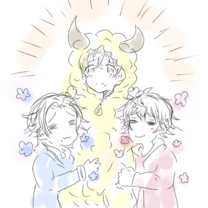 末弟にもふもふひつじきぐるみをきせる山田三兄弟