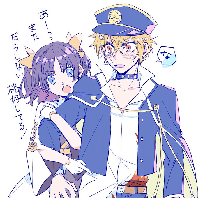 よくわからん爆発に巻き込まれるハク主カンヤの絵