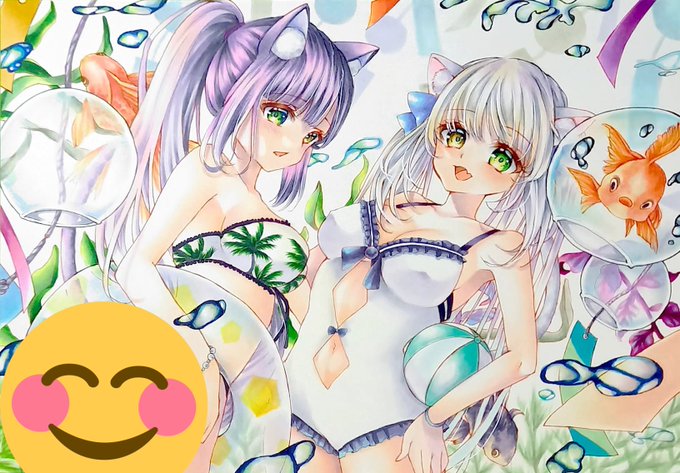 #イラスト #ヤフオク #絵柄が好みっていう人にフォローされたい 双子のにゃんこ完成しましたー✨久しぶりのオリジナルも楽しかったです😌💓