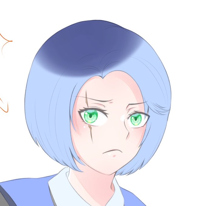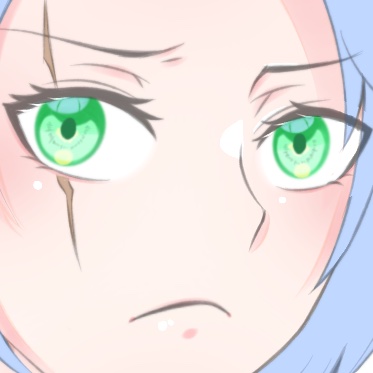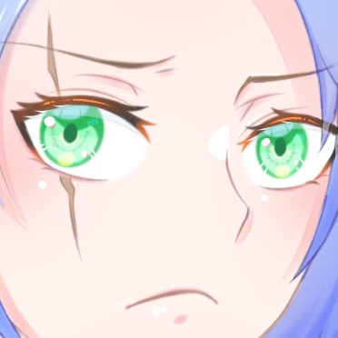 これは好みですが、再びファイルを作って作成した目を入れる。その上からレイヤーを置いて鉛筆ブラシで薄い水色で影を塗る。オレンジで線を入れる