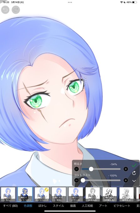 fx機能で色を調整、消しゴムで適当に削って、頭頂と同じ色でフェード使ってる下から適当に塗る