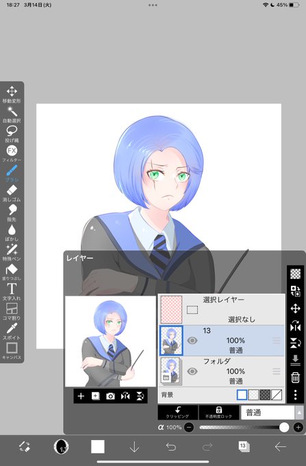 服の陰影は鉛筆ブラシ使用してざっくりアニメ塗りしてるだけです