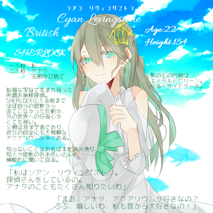 海や水の中が大好きな、生粋のお嬢さま探偵です!好奇心がとても強く、気になったものは何でも調べちゃう子です🐠