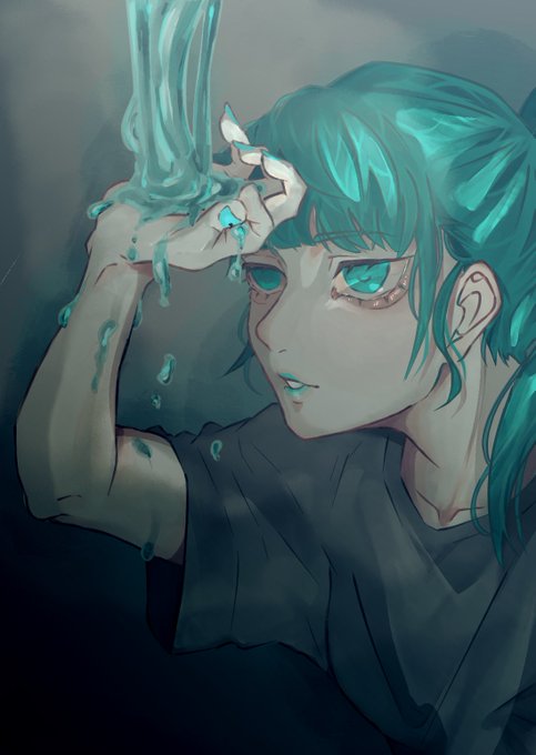 青っぽい緑or緑っぽい青 光の反射?を勉強中、、、。 #イラスト #女の子 #青 #緑 #光 #オリキャラ #オリジナルキャラクター