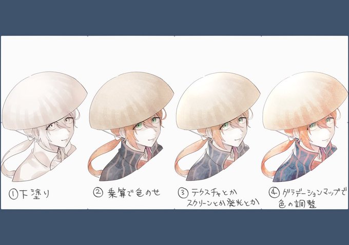 @sora8tr @weapon_twin すごい簡易的なものですけど、牡丹さんはこういう流れで描いてます…