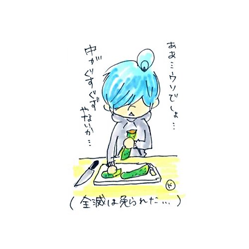 買ったきゅうり(徳用大入り) 中が傷んでおった…悔しい けども 切る前の見た目は悪くなってるように見えないからお店の人も気づかないだろうなぁ でもなぁぁぁぁぁ 諦めきれずモヤモヤ #できるだけ1日1絵 #きゅうり #日常絵 #イラスト