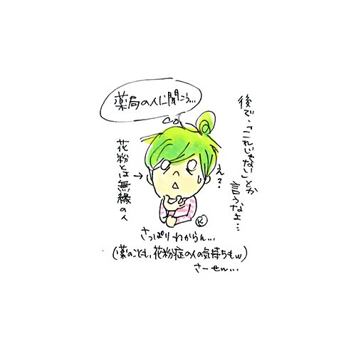 花粉症の薬を買ってくるように家族から頼まれたのだが…なかなか無茶な要望 薬剤師さんに相談 もちろんそんな万能な薬はなく でも私が決めた薬は薬剤師さんもめちゃ納得してくれた! 2人でフフフっと笑ったよね!( *´艸) 薬剤師さんありがとう! #できるだけ1日1絵 #花粉症 #日常絵 #イラスト