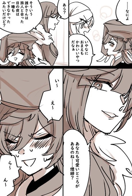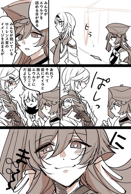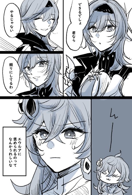 エウルアとアンバーの昔の話を描くときふたりの髪の長さが逆なのは、エウルアには騎士団入団時に髪ざっくり切ってほしいのと、片方の長いところ触る癖あるから、元々長かったろうなって妄想