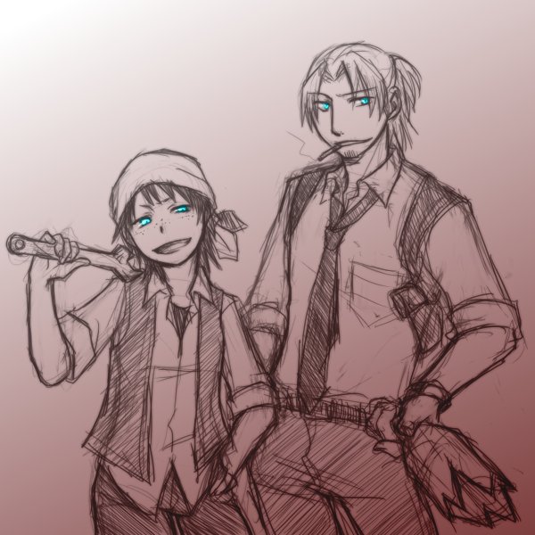 @pppolice00 遅ればせながら乗っかってみたかったのでキャラシで煙草吸ってる二人をざかざかと。パッケージまで描く根性はなかったので拾い物…