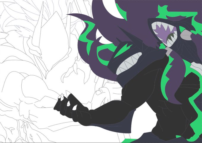 カーマ仮塗り。肩のとこの布やらの描き込み・塗りが出来てないからそれやって、腕・足の模様も描かないと。 因みに表情差分も作る予定。二次創作の方が描きやすいから暫くはファンアートで画力鍛えるかな。 オリジナルはどうしても考え込むせいで手が止まる(;´Д`)