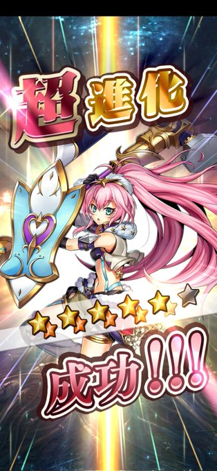 思い立ってからはずっと進化させるごとに色々スクショしてる ①「超進化」が出る前の一瞬 ②「超」に赤い光とキラッが重なった瞬間 ③星6になる直前の素材(矢印なし) ④同上(矢印あり)