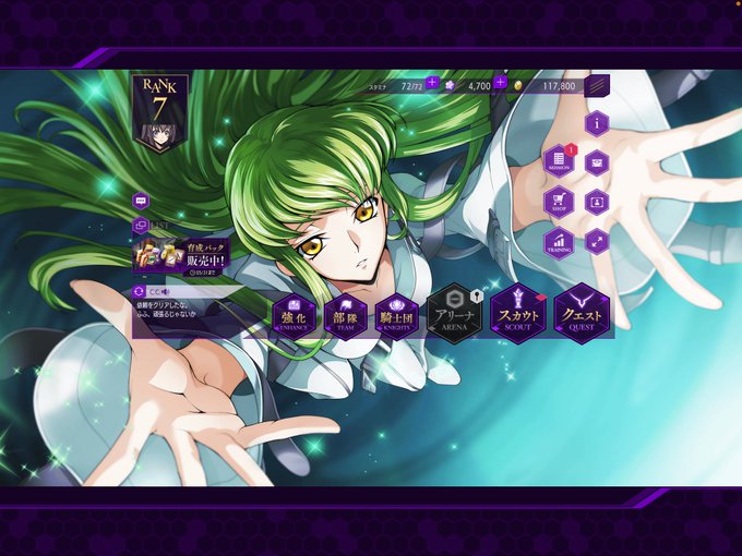 とりあえずC.C.来たからおけ! カレンは待ちます🙃 てか、BGM解禁したら設定出来るの良すぎるやろ! #ロススト #コードギアス