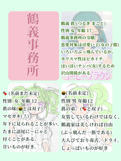 @kokuto_0w0 大変すみませんでした🙇🙇🙇 そうですよね!ないとダメですよね!恋人フリー(?)な子達はこの子達ですね…!!🍫と🍘はまだ名前未定でデビューしてないのですがイラストみたいな感じです! はい…!!この子達の中からで大丈夫でしたら大丈夫です!