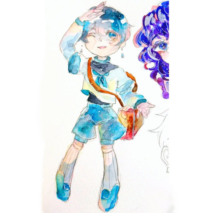 ついでにこっちも色塗った #イラスト #水彩