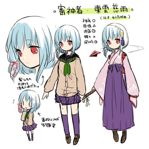 東雲慈雨。元キャラはジンという名前の風神(※男)、その現身。ゾンビ街の方は感情豊かなドジっ子だが、審神者の方は感情を失った人形みたいで、性格が違うパラレル。風は勿論何かと刀にも縁が深い。