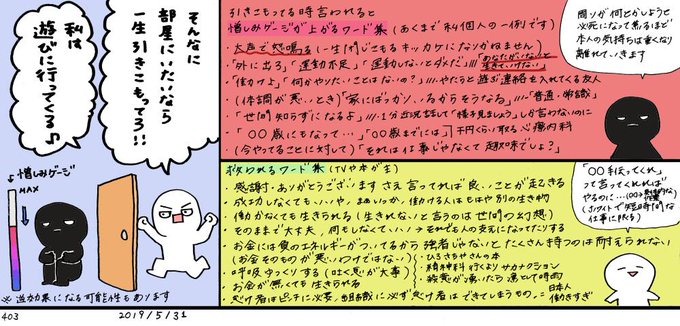 左の絵は「外に出ろ」と言われ続けるよりはマシかなぁと思ったけど、逆に全力で引きこもる気もしてきました。