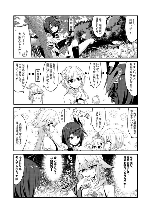 気になるお年頃 #原神 #原神4コマ 九条裟羅 八重神子