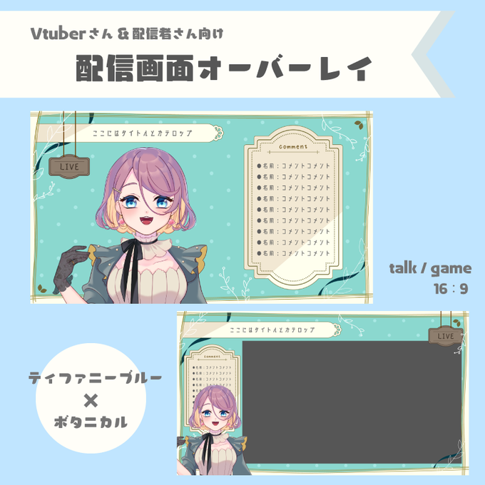 ティファニーブルーと植物を使った配信画面を制作しました🌿 どなたでもご自由にお使いいただけます💗 有料版には雑談用とゲーム用が入っています。 ▼DLはboothからどうぞ🎁 https://t.co/dkOFOZVUnS #booth_pm #フリー素材 #Vtuber