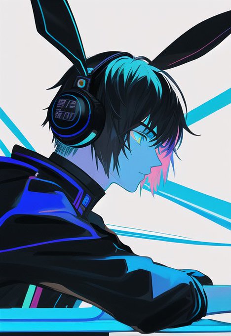 うわーーーっ!可愛いっウサミミヘッドホン可愛いッ後はこれで17 yr boyであれば完璧なんだよAI先生…っ #AIイラスト #AIart