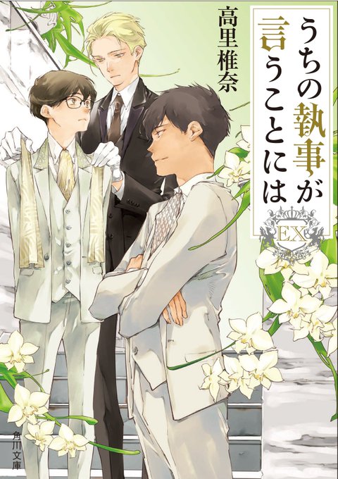 4月24日発売の「#うちの執事」シリーズ最新刊『#うちの執事が言うことには EX(エクストラ)』の書影を本日解禁です。映画化記念の特別編ということで、カバーも豪華3人のそろい踏みで佐原ミズさんに描いて頂きました。美麗! そして初版限定で素敵なお知らせが!(続)