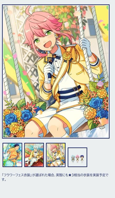 革命が終わって英智がぶっ倒れて入院してた時期に開催されてたのが現fineのフラワーフェスなんですけどテンペストで春の嵐として4人のフラフェスやったけどもしかしたら関係あります?考えすぎ?この衣装あまりにもフラフェス
