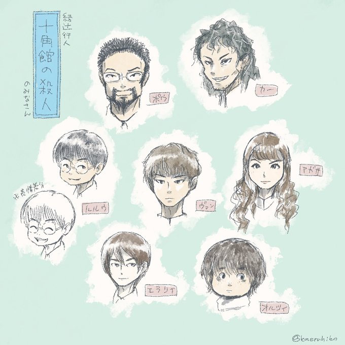 #十角館の殺人 を読み終わる。登場人物のみなさんの顔、こういうイメージで読み進めてました のイラスト #蛙絵日記 #一日一絵
