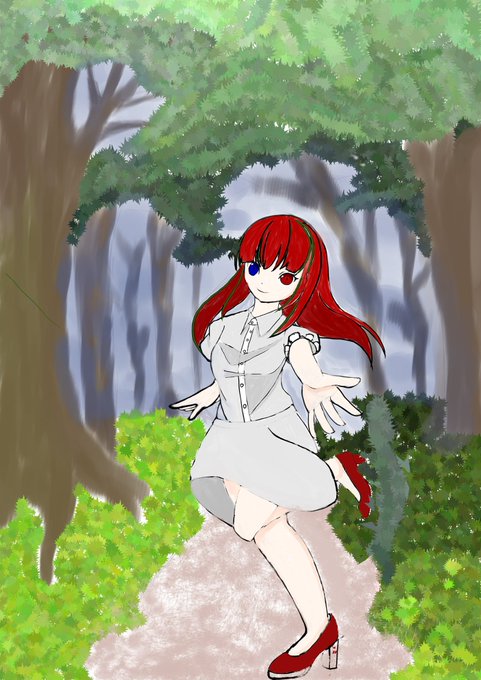 #イラスト 森の中を進む少女とあなた