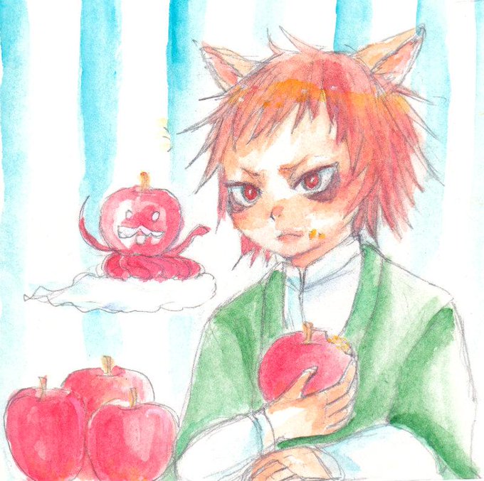 @5963sousaku ちかさーん!昨夜のおかしなテンションで描いたアライ氏をお届けにあがりました。いたいけな子どもをたぶらかす悪いリンゴの図です…。