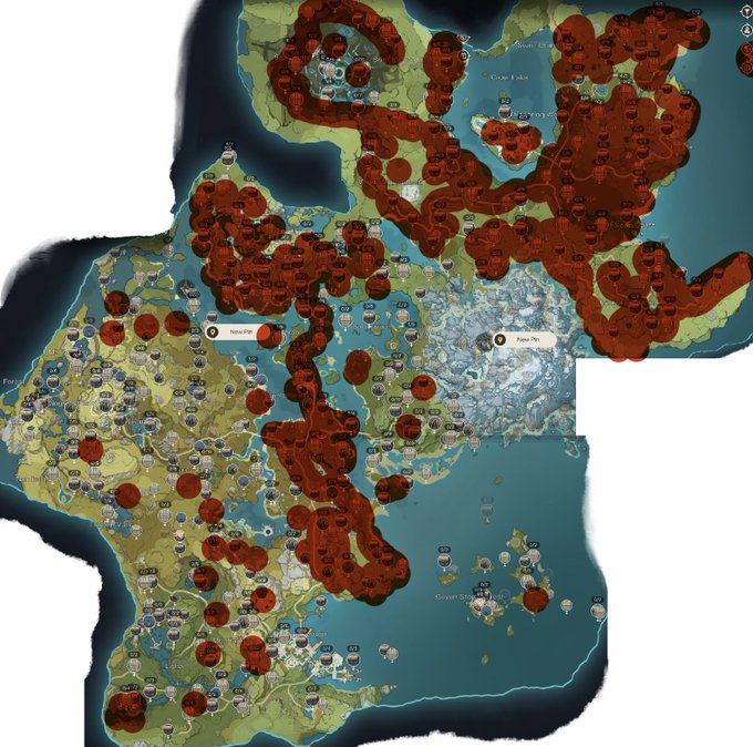 red is where i've been with the treasure compass today