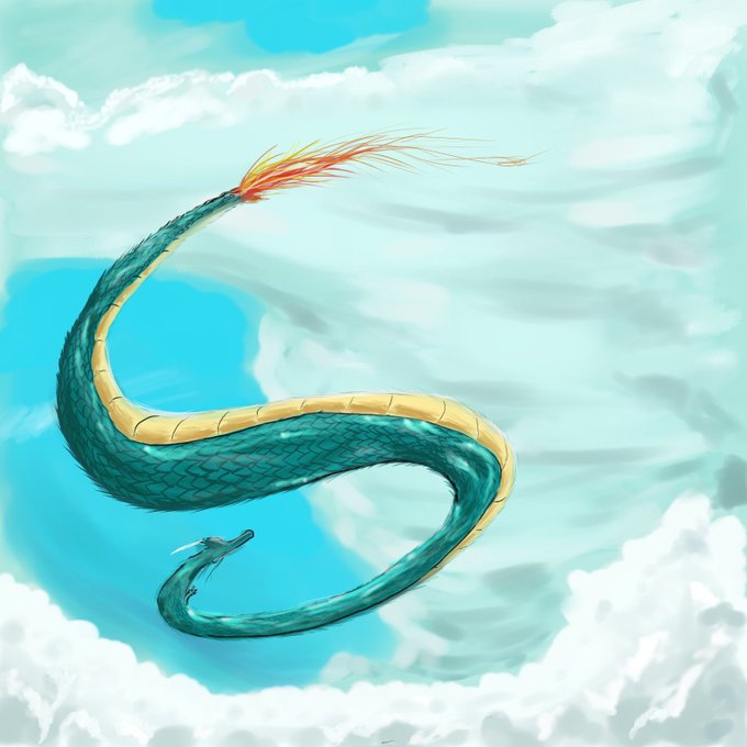 竜の居場所 #イラスト #竜 #空 #雲