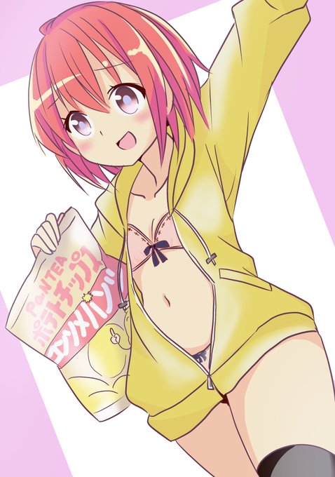 「お兄ちゃんのポテチ食べていい?」 今日は日曜日、お兄ちゃんに甘える気満々ですね♡ おはようございます(*´▽`*) #イラスト