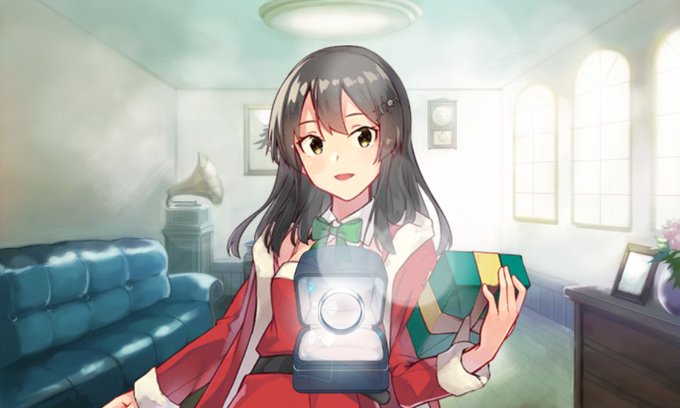 進水日のカッコカリを見送ったガッサ、那珂ちゃん、親潮、岸波とクリスマス衣装でのカッコカリをしました目が笑っている笑顔