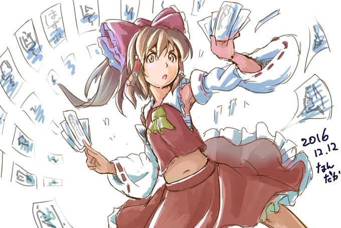 #深夜の真剣お絵描き60分一本勝負 霊夢。約10分オーバー。 そろそろペンを持つ手がかじかむ気温になってきましたね。