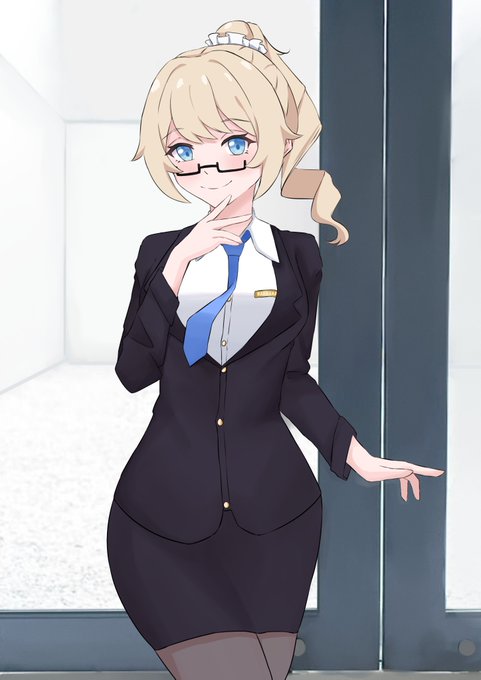 Barbara ponytail with office lady clothes and magane