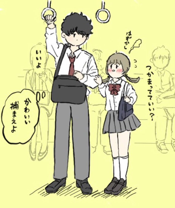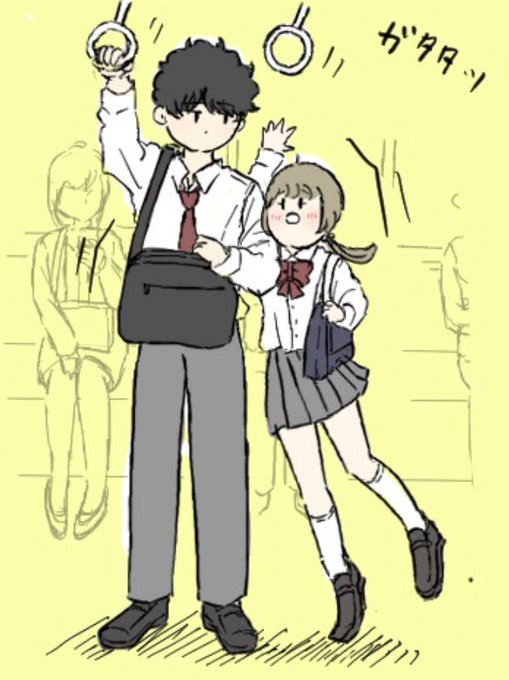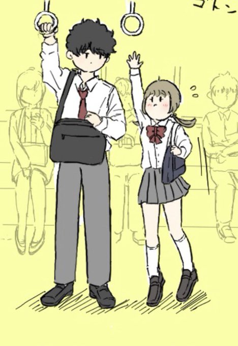 小さい彼女は吊り革に手が届かなくて電車が揺れてくっつくしかなくなったカップル🌼🚃🌼 #イラスト #絵描きさんと繋がりたい #身長差カップル #イラスト好きな人と繋がりたい