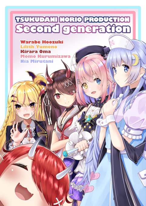 にぃあちゃん、ももちゃん、きららちゃん、リリスちゃん、わらべおばぁちゃま…のりプロ二期生集合イラスト♪