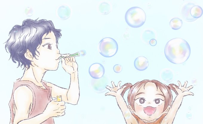 兄妹とシャボン玉 (ちょっと動きます)