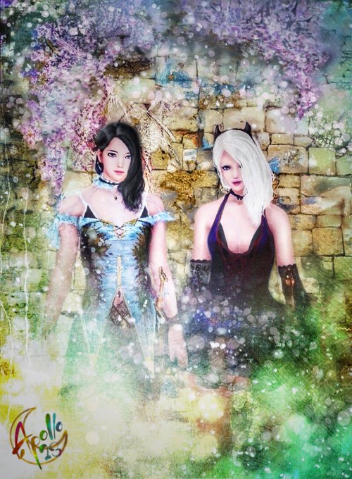 2周年おめでとうございます。メインはアークマジシャンですが、ランと緋蓮も大好きなのでこの2人を描きました! #黒い砂漠MOBILE #黒モバ芸術祭2nd_イラスト