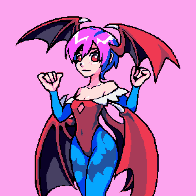 Lilith Aensland in a couple outfits and a bunch of extra pixels. #Darkstalkers #pixelart