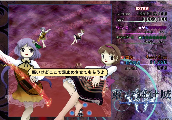 その温厚さは、妖々夢と花映塚の全表情(データ内未使用分含む)の中に一つとして「眉をつり上げている」表情が無いし笑顔成分の無い表情が妖三種類花九種類の中に計三つ(妖の合同カットイン、花の驚きと怒り)しか無いことにも表れているぞ