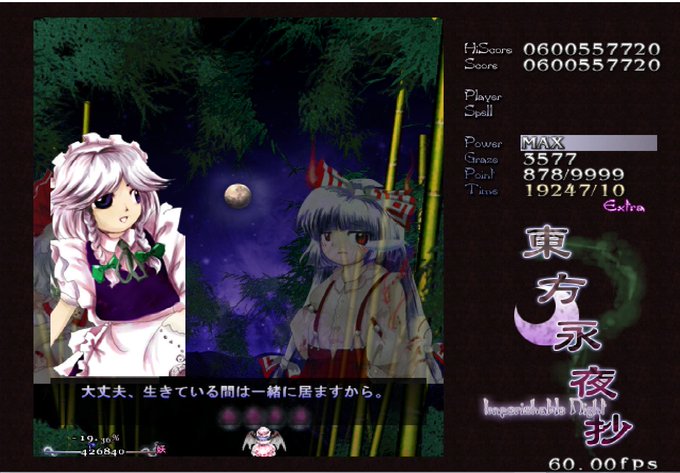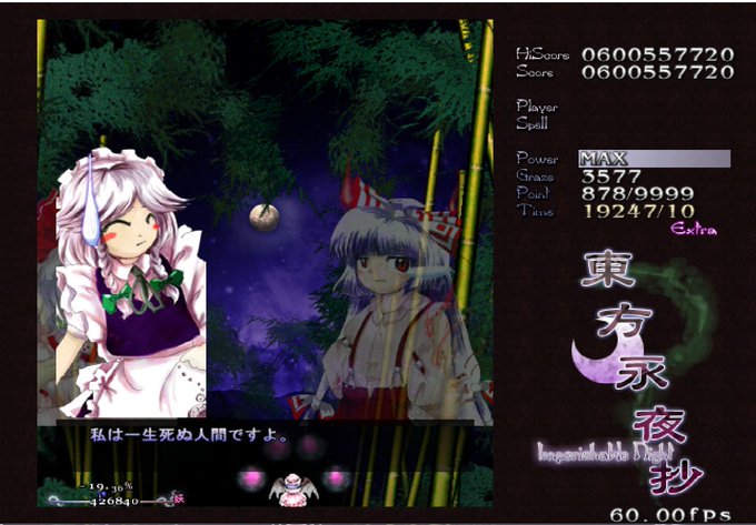 ……だとすると、咲夜の存在が益々ヤバくなってくる 「遥か太古、月の民が穢れを避けて月に行く前」くらいしか地上人を「一目見ただけで能力まで判るくらい詳しく知る」機会が無かった永琳が見ただけで驚き夜止めてる犯人と見抜く つまり地上時代の月の民が生み出した存在の可能性がある訳だが……