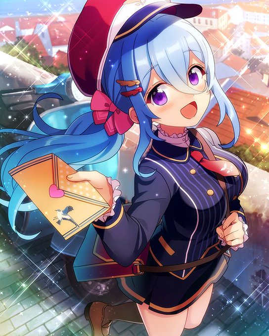 カード名が「幸運の郵便屋さん」ということで手紙には幸運の象徴である青い鳥。背景は魔女の宅急便の舞台、クロアチアのドゥブロヴニクの街並みでしょうか?