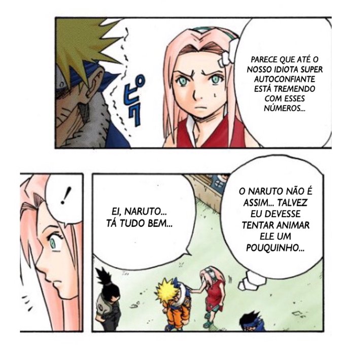 Apesar de Naruto ser autoconfiante, vemos Sakura pensando em desistir da prova para proteger o sonho dele