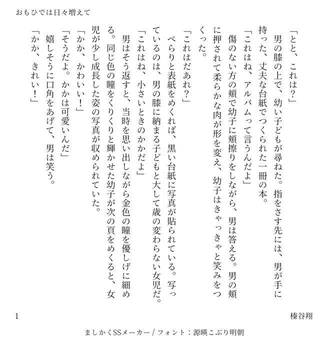 一応ウツハン♀ちゃんのつもりですが、愛弟子ちゃん出てこないし、子どもとか捏造しているので苦手な方はお気をつけください。