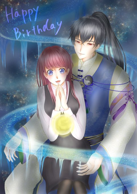 お誕生日おめでとうございます💐 幸せを願っております🙏💫 空に月陰で巫女と真冬のお月見🌕🌌 #安倍晴明生誕祭2022 #アカセカイラスト