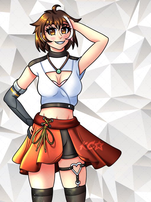 @x_AshesandGhost Also, I recently did my friend’s character in this outfit, and I updated the top a little bit, and gave her a long gray glove to emulate the robot arm,,, 😅