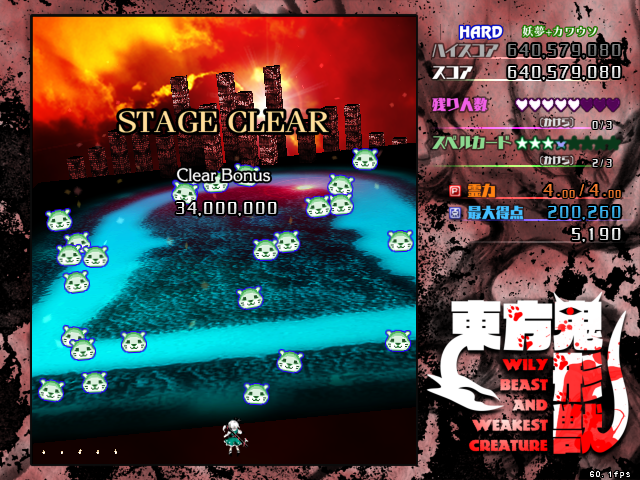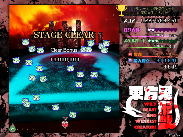 というわけで購入から46日目にして 鬼形獣ルナ初クリアしました! こんな残機余るとは… カワウソ、ロアも良いけど やっぱボムの性能差が他よりあり過ぎる感
