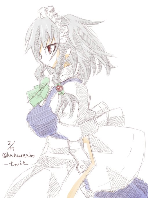 #深夜の真剣お絵描き60分一本勝負 今回は咲夜で。 途中まるまる描き直したので遅れました(^_^;)