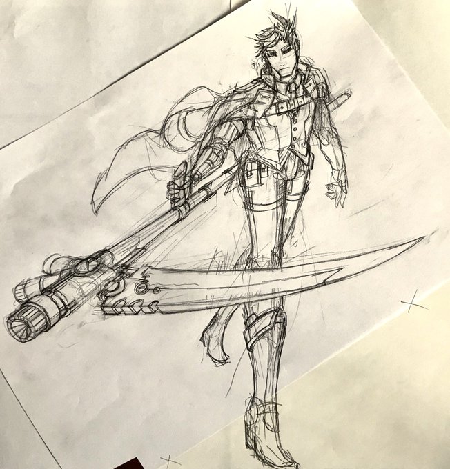 ラダカインも下書きは手描きです。手描きをスキャンして頭身など調整、フォトショで仮の色を置いてから清書、気分で影つけてる。