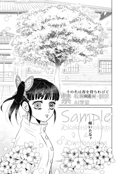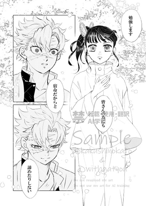 12月15日(日)COMIC CITY 東京151内 日輪鬼譚 42 西1ホール キ26b「がちょうさんマジック!」で参加いたします。 新刊はヲちゃんと🍃柱のお話「その名は春を待ちわびて」の再録と描きおろしです。CPではありません。以下描きおろしのサンプルです。